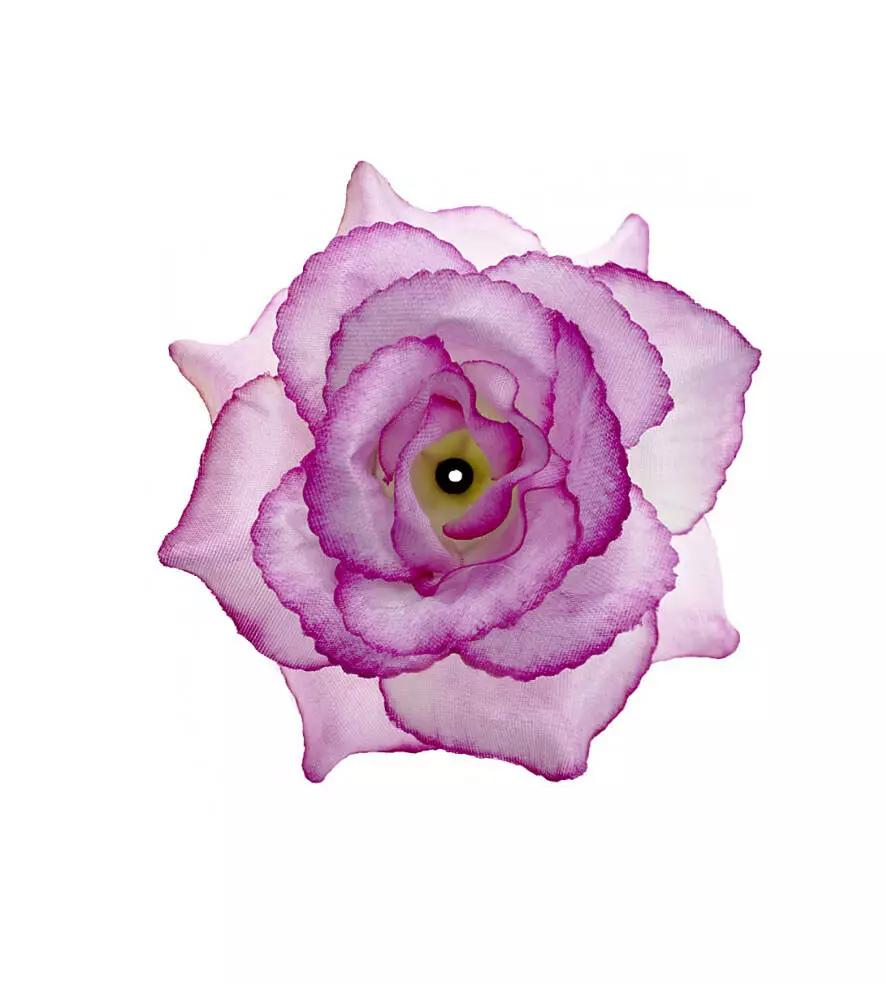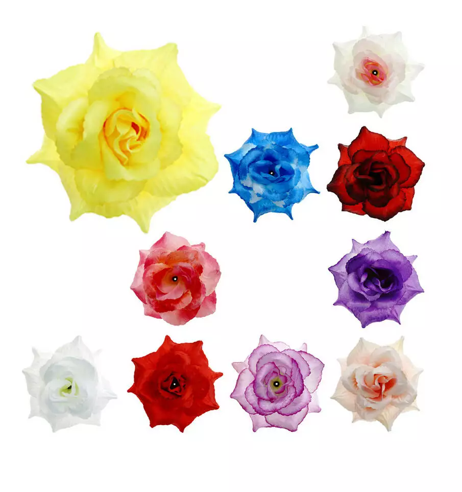 Штучна голова троянди з атласу діаметр голови 13 см. У прозорій фабричній упаковці зібрано 40 голів троянди з атласу однакового забарвлення.