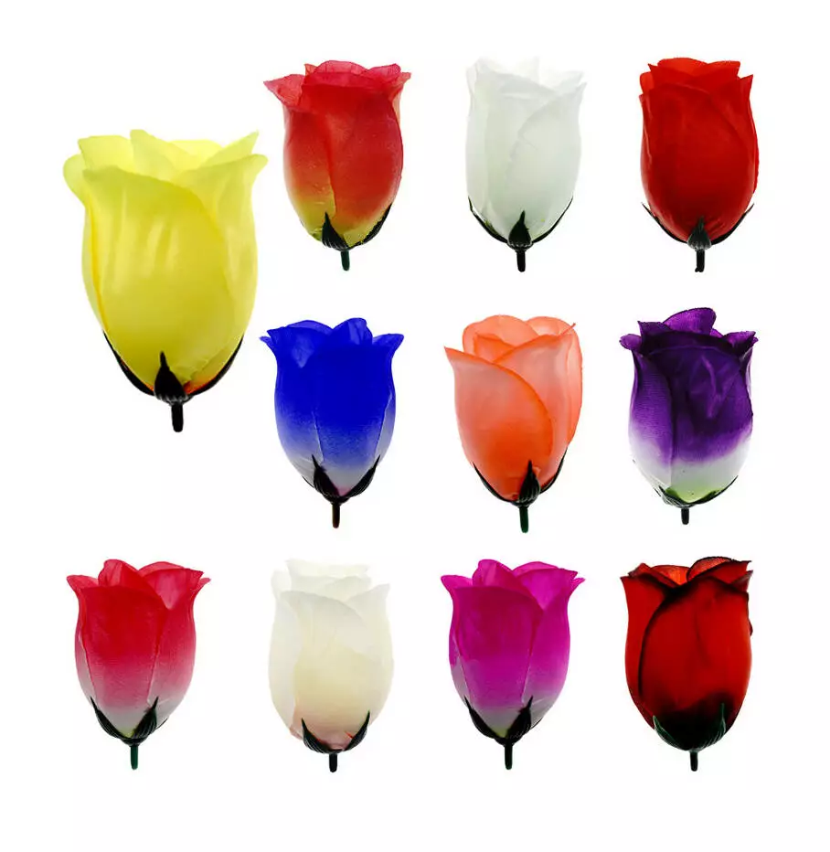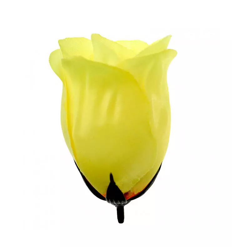 Штучний бутон троянди шовк діаметр голови 6 см, висота бутона 8,5 см. У прозорій фабричній упаковці зібрані голови 50 шт однакового забарвлення.