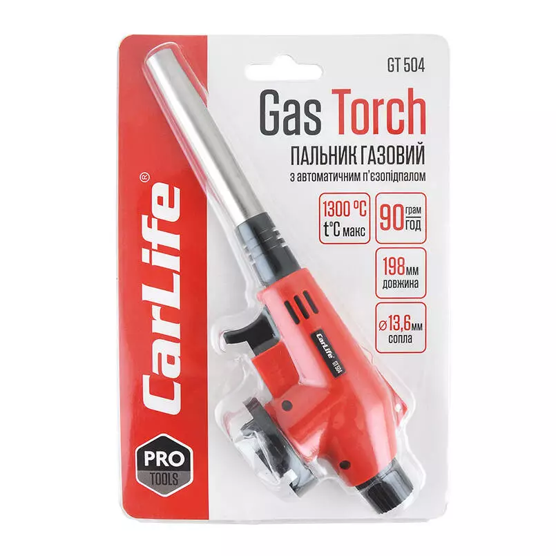 <p>Горелка газовая с пьезоподжигом Carlife, сопло: Ø - 13,6мм, дл. - 76мм</p>