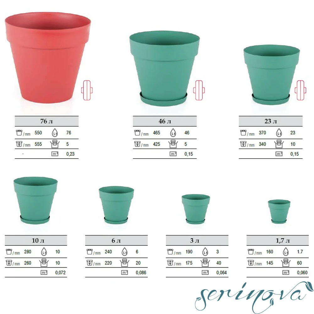 Горщик представлений в декількох об'ємах: 1,7 л; 3 л; 6 л; 10 л;