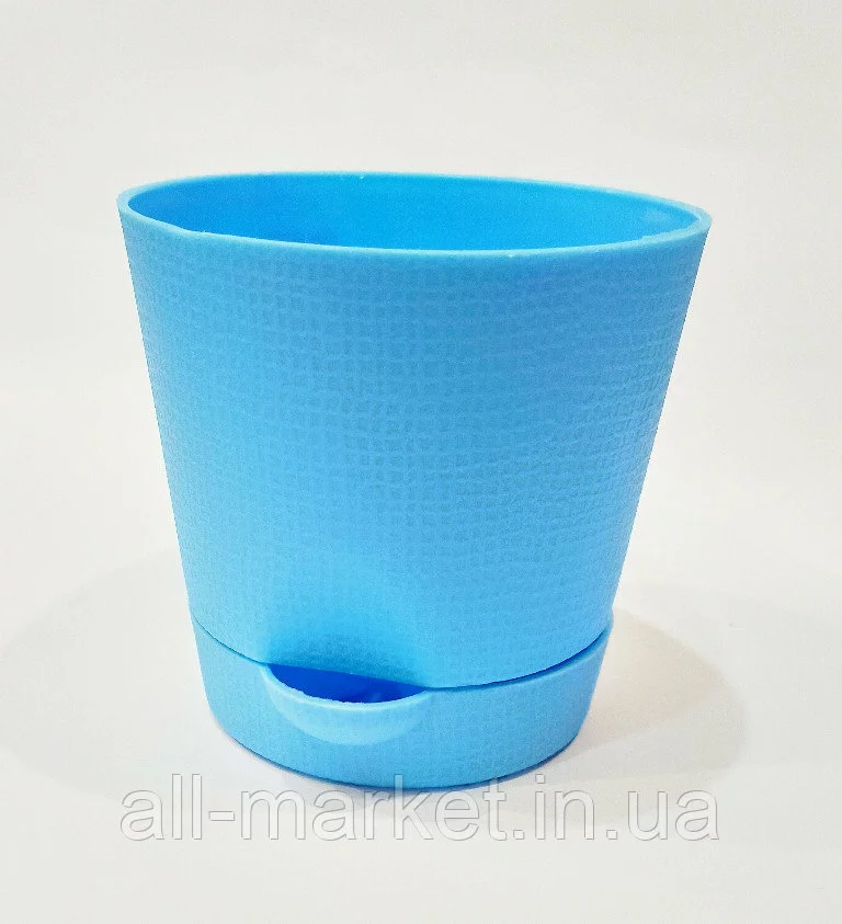Пластиковый горшок для цветов  0.7 л. с системой прикорневого полива или нижний полив. Прикорневой полив осуществляется с помощью специального носика, который расположен в поддоне горшка. Корни растения получают столько влаги, сколько им положено, исключая их загнивание. Поддон крепится ко дну горшка специальными крепежами. Особая конструкция обеспечивает дренаж и вентиляцию корней растений. Особенность дизайна серии: яркие цвета и выраженная текстура поверхности.