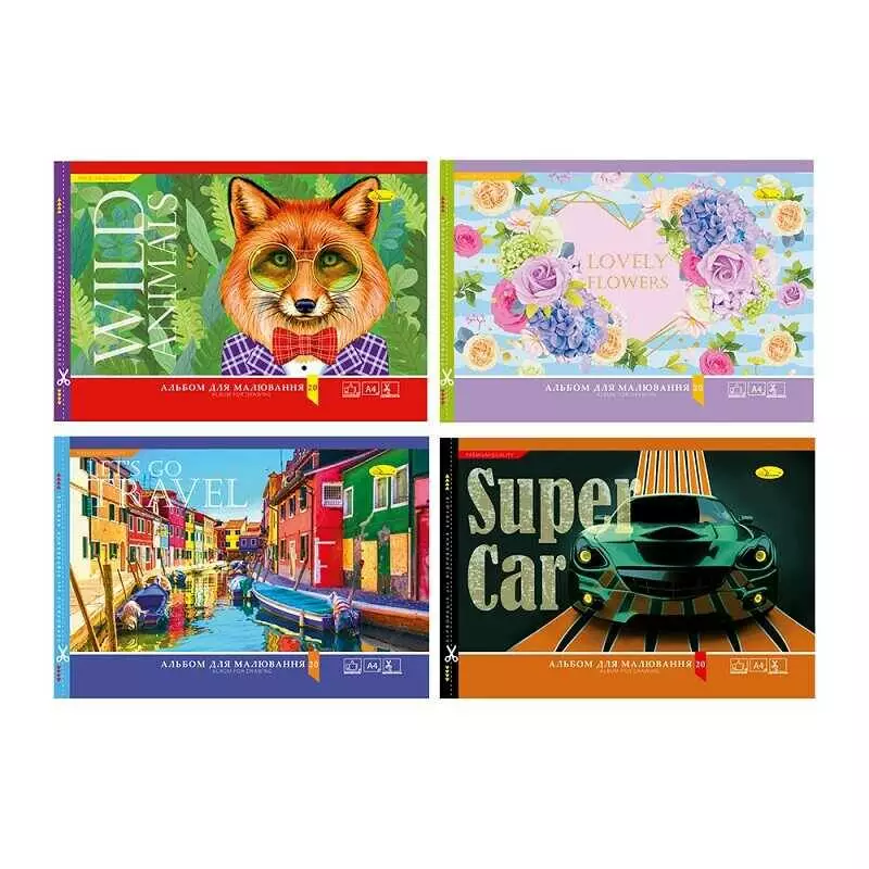 гр Альбом для малювання 20 аркушів АМП-С-20 / АП-0303 скоба с перфорацией (20) "Апельсин" ВИДАЄТЬСЯ МІКС ВИДІВ
