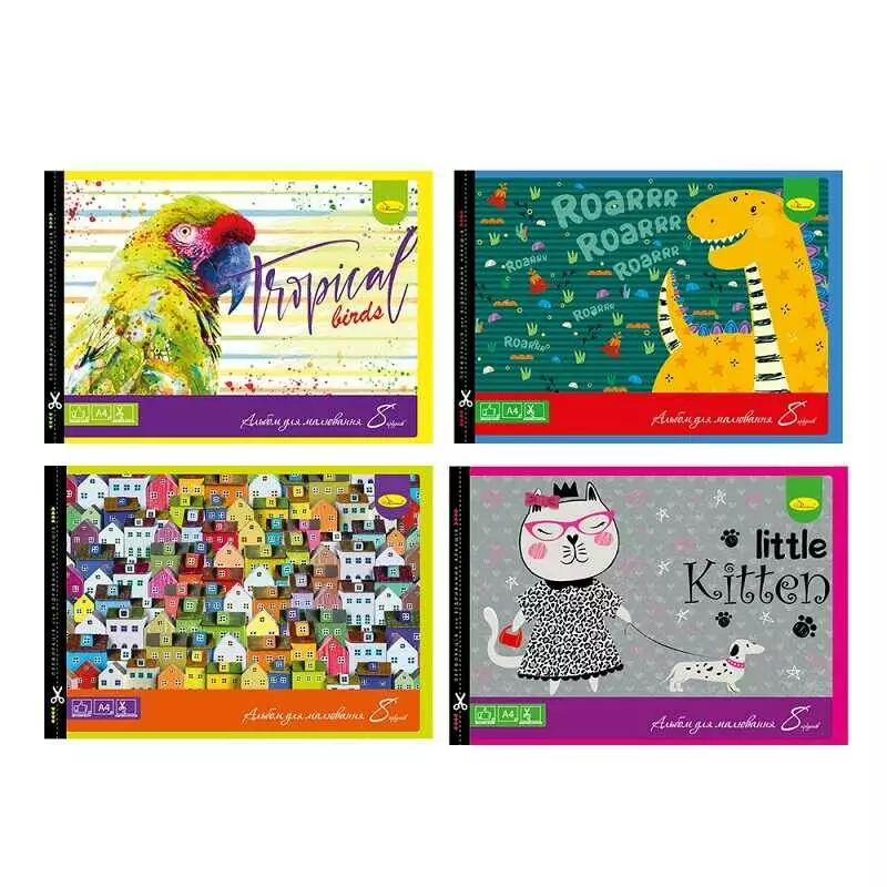 гр Альбом для малювання 8 аркушів АМП-С-8 / АП-0301 скоба з перфорацією "Апельсин" ВИДАЄТЬСЯ МІКС ВИДІВ
