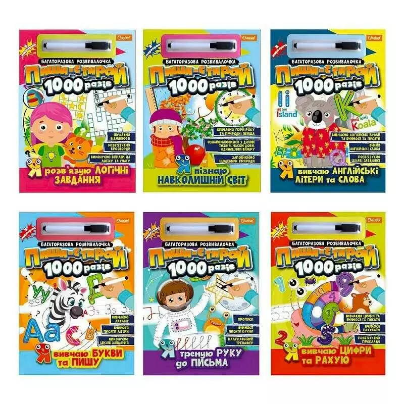 гр Багаторазова розвивалочка "Пиши-стирай 1000 разів" з маркером НТ-08 ВИДАЄТЬСЯ МІКС ВИДІВ (12) "Апельсин"