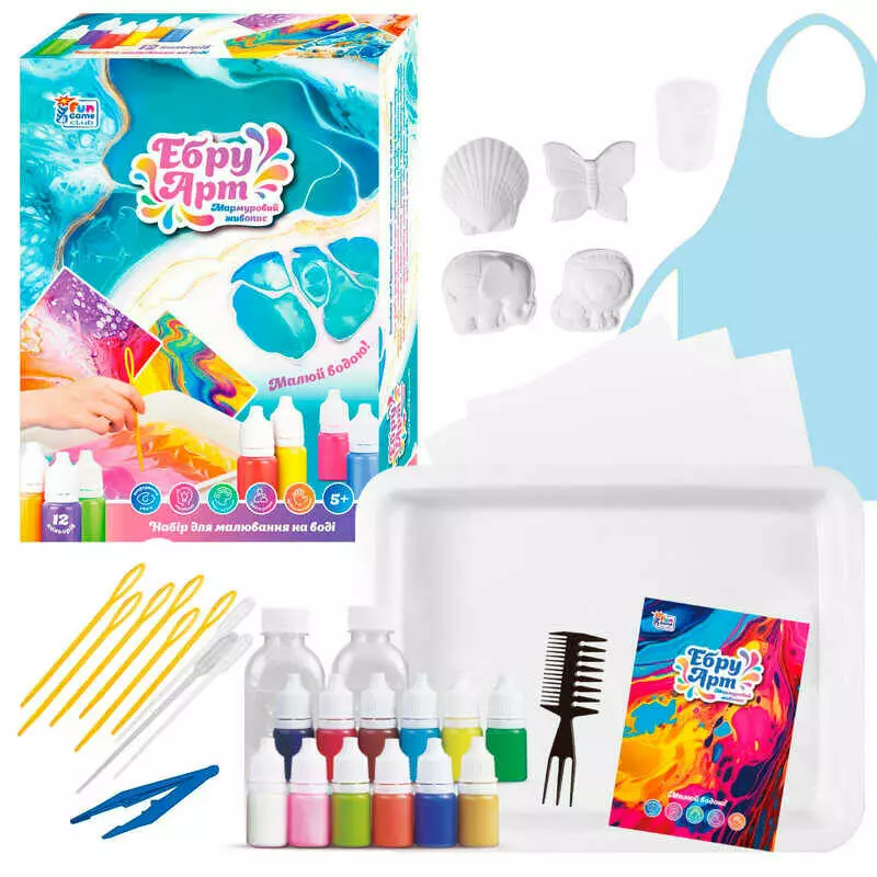 гр Ебру арт 94133 (12) "4FUN Game Club", 12 пігментів, гіпсові фігурки, концентрат, акварельний папір, інструменти, у коробці