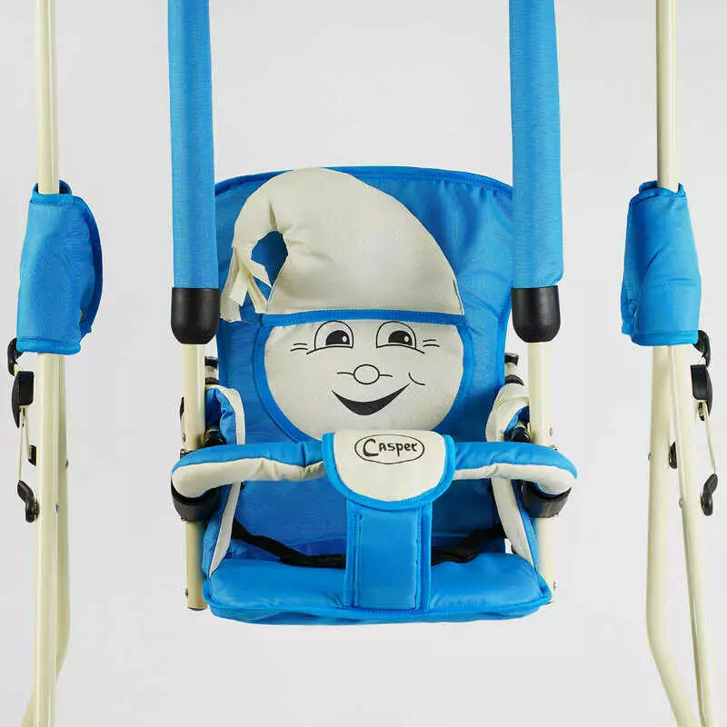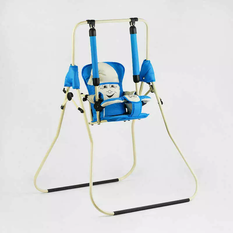 гр Гойдалка підлогова "Алінка" 205317 (1) бежевий каркас, синя матерія, бежевий гномик, в пакеті