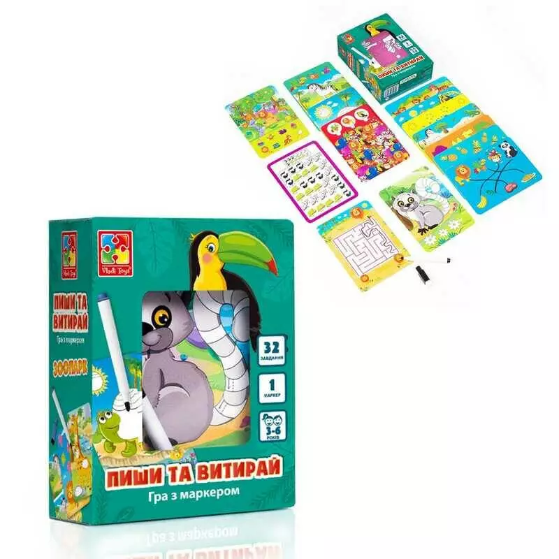 гр Гра настільна "Пиши та витирай. Зоопарк" (укр) VT 5010-20 (12) "Vladi Toys", 34 магнитных элемента