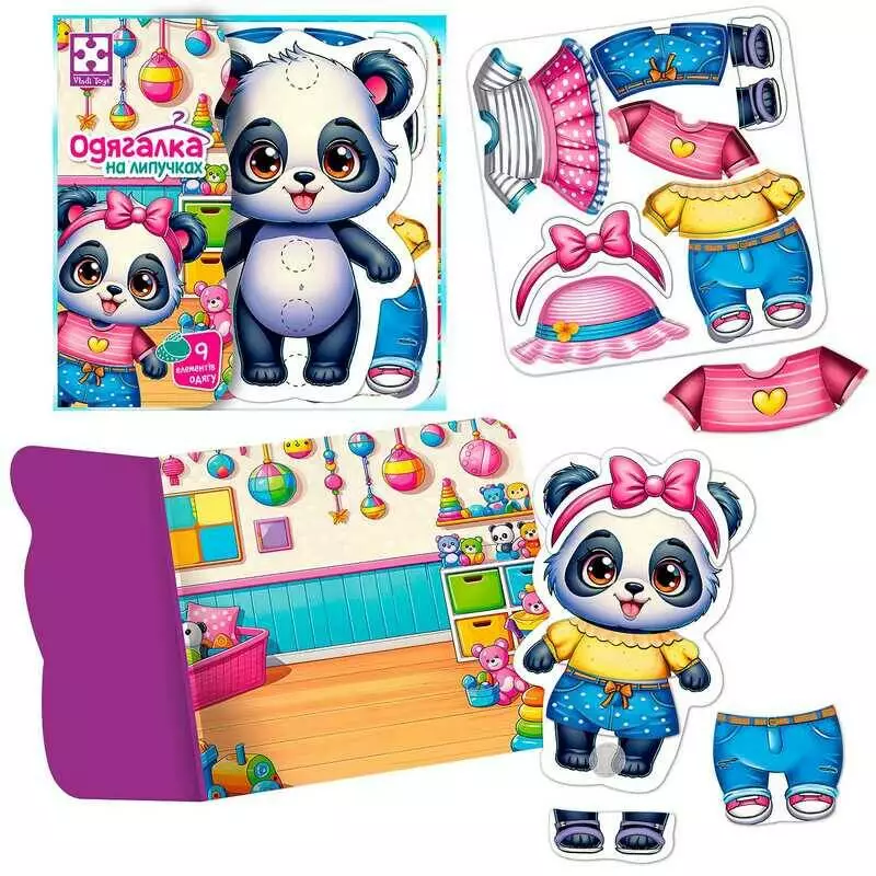 гр Гра з липучками "Пандочка" VT1320-05 (90) "Vladi Toys", фігурка, 9 предметів одягу, ігровий фон