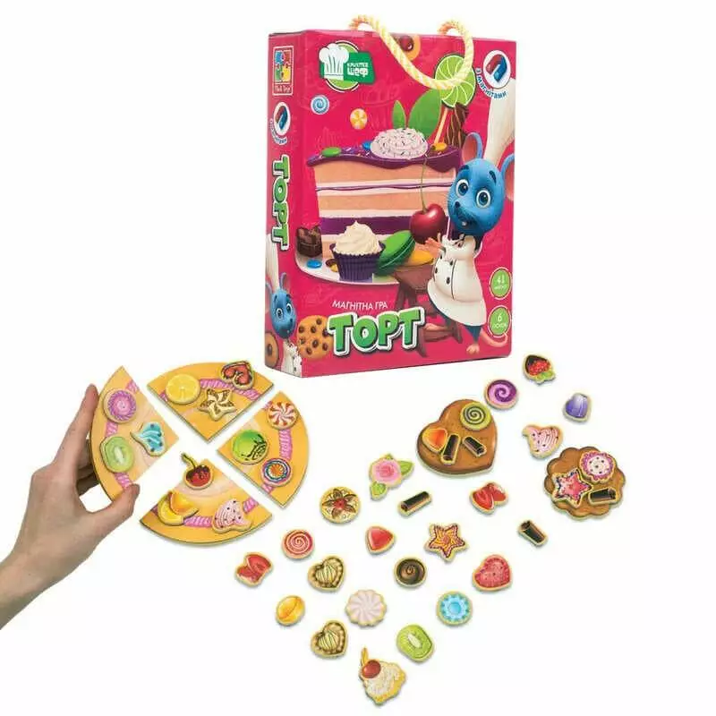 гр Игра магнитная "Торт" VT3004-01 укр. (8) "Vladi Toys", 6 оснований, 41 магнитный элемент