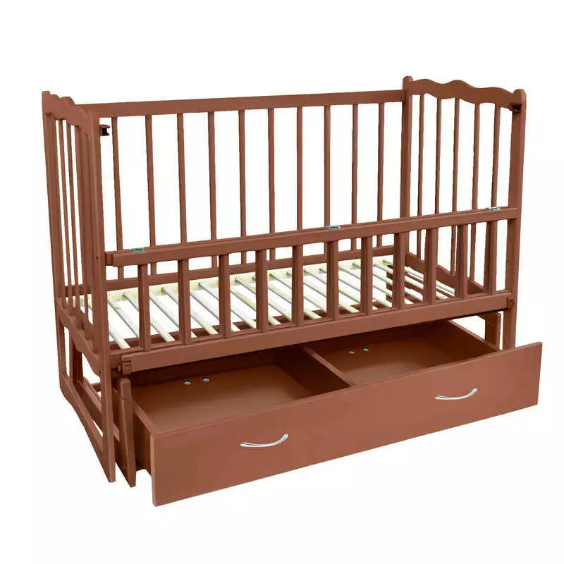гр Ліжечко дерев`яне маятник + шухляда - відкидний борт "Сон" (1) вільха - колір Шоколад