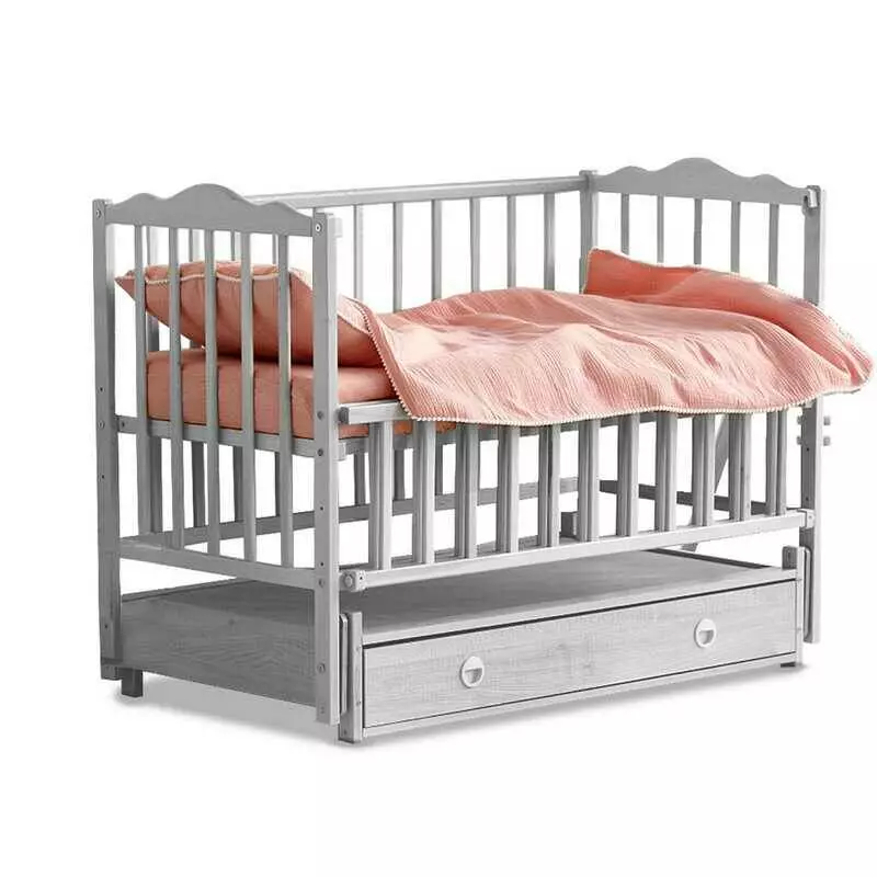 гр Ліжечко дитяче "Ангеліна" (1) шарнір-підшибник з відкидною боковиною+шухляда, бук (Сірий)