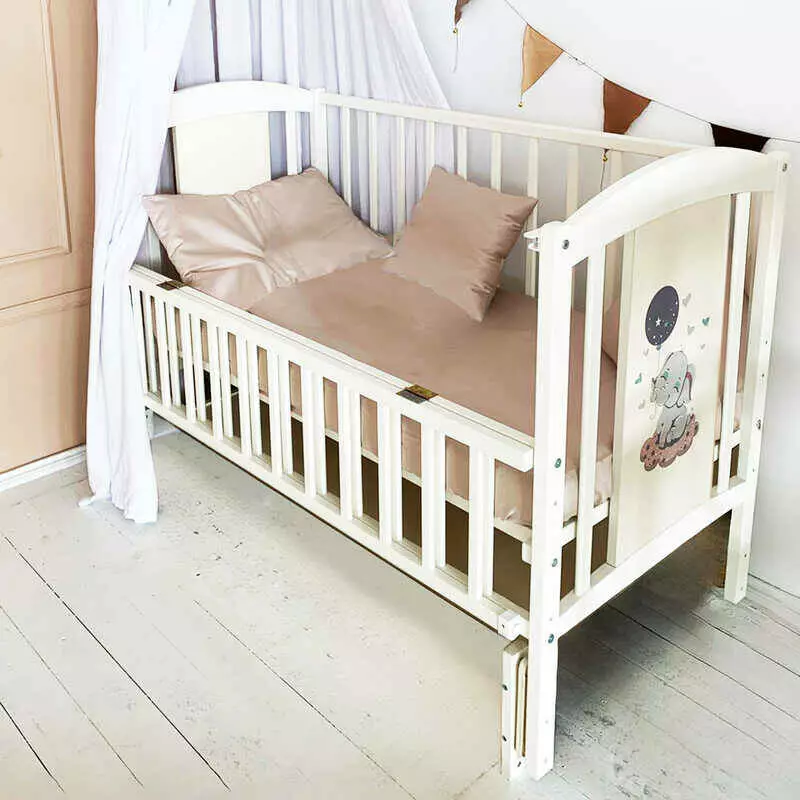 гр Ліжечко дитяче ЛІЛІ-2 "Слоник" (1) шарнір-підшибник з відкидною боковиною, (слонова кістка)