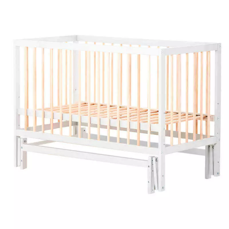 гр Ліжечко дитяче "Софія-2" - шарнір-підшипник з опускною боковиною (Білий + натуральний)