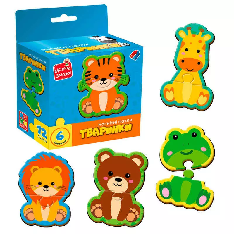 гр Магнітні пазли "Тваринки" VT1733-04 (20) "Vladi Toys", 6 картинок (12 деталей), в коробці