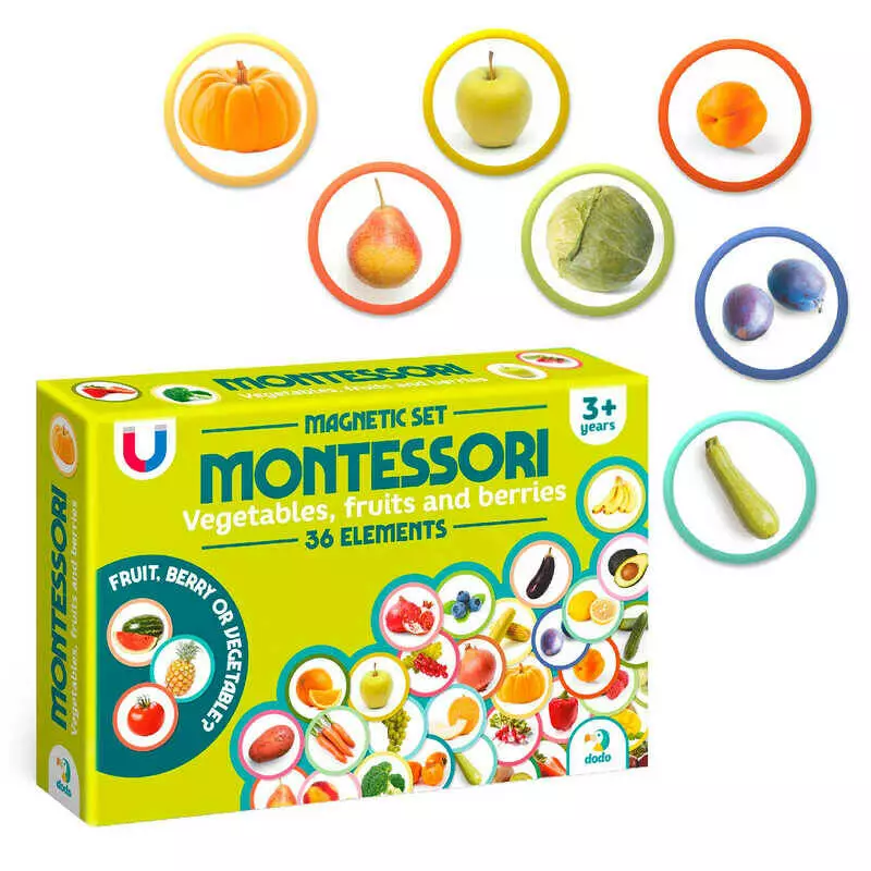 гр Магнітний набір Монтесорі «Овочі, фрукти і ягоди» 200272 (32) "Dodo", 36 елементів, в коробці