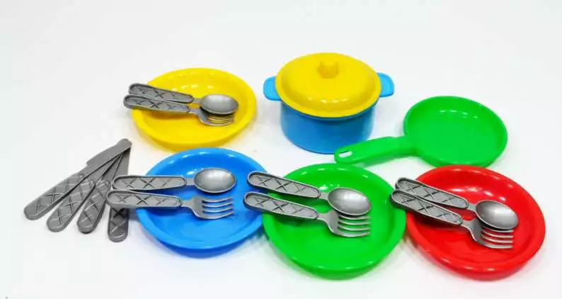 гр Набір посуду "Маринка 10" 1646 (30) "Technok Toys", каструля, сковорідка, кришка, 4 тарілки, 4 комплекти столових приладів, в пакеті