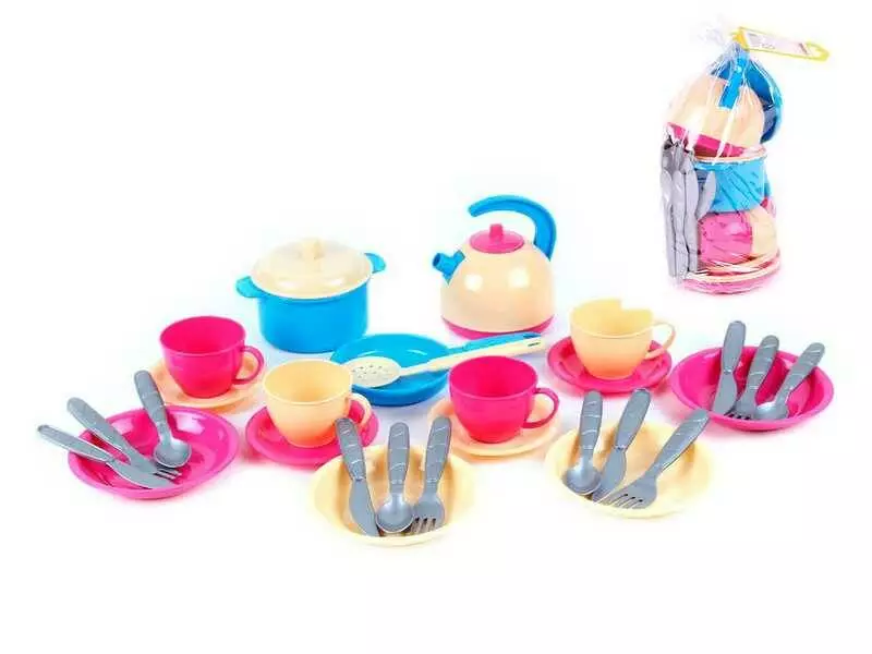 гр Набір посуду ""Маринка 11"" 1653 (21) ""Technok Toys"", чашки, блюдця, ложки, тарілки, каструля, чайник, столове приладдя, в сітці