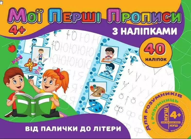 гр Мої перші прописи з наліпками, 40 наліпок: "Від палички до літери" 9789669756114 (100) "JUMBI"