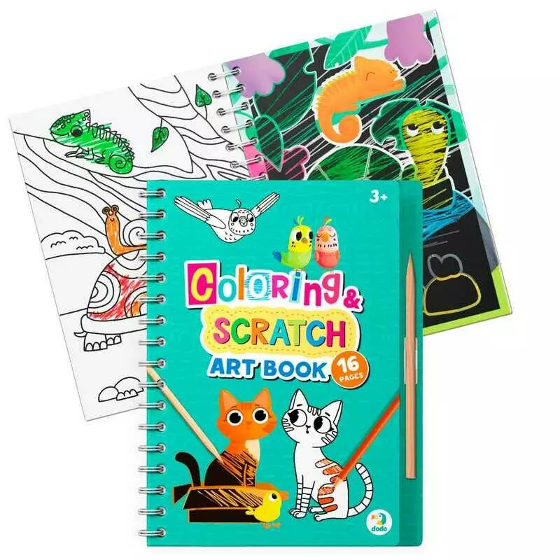 гр Набір для творчості 2в1. Розмальовки та гравюри "Домашні тварини" 300490 (1) "DoDo", 8 сторінок-розмальовок, 8 сторінок-гравюр, деревʼяний стилус