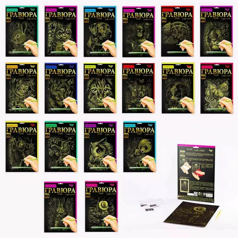 гр Набір для творчості "Гравюра А4" с.2 ГРА4-02-01з..18з,01с..18с (18) "Danko Toys", ОПИС УКР. МОВОЮ ВИДАЄТЬСЯ МІКС ВИДІВ