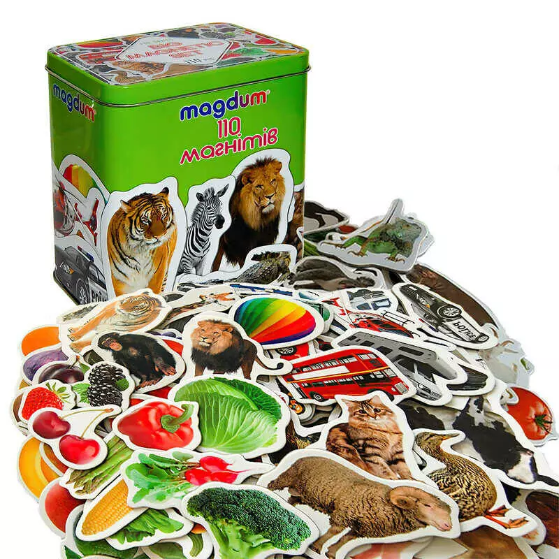 гр Набір магнітів ML4031-63 EN (16) "Magdum", 110 елементів, тварини, транспорт, фрукти, в коробці