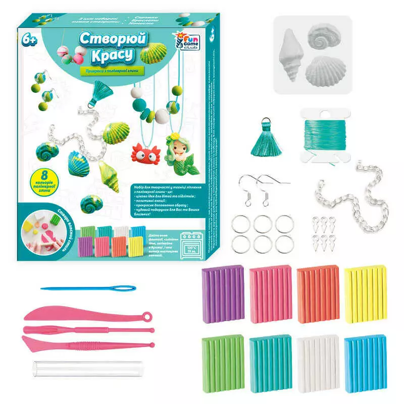 Головна > Каталог > гр Набір полімерної глини 38406 (36) "4FUN Game Club", 8 кольорів глини, форми, фурнітура, ланцюжок, еластичний шнур, в коробці оптом