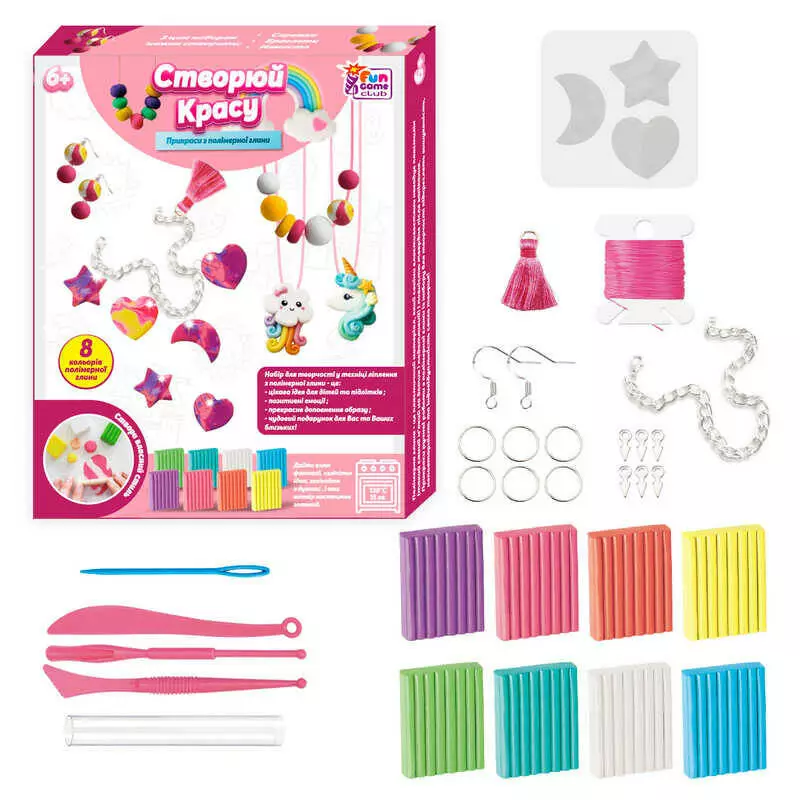 Головна > Каталог > гр Набір полімерної глини 76948 (36) "4FUN Game Club", 8 кольорів глини, форми, фурнітура, ланцюжок, еластичний шнур, в коробці оптом