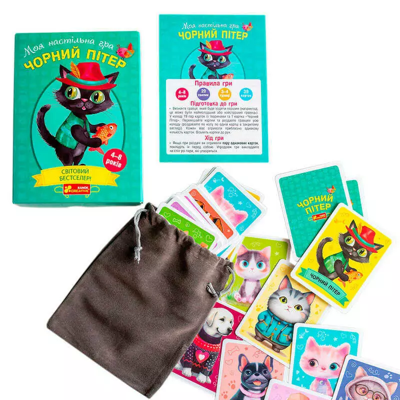 гр Настільна гра "Чорний Пітер" 10120205У (10) "Ранок", 39 карток, велюровий мішечок, в коробці