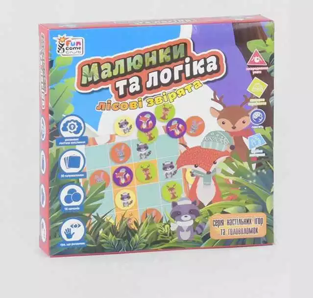 Головна > Каталог > Іграшки > Розвиваючі іграшки > гр Настольная игра "Малюнки та логіка - Лісові звірята" UKB-B 0032 (12) "4FUN Game Club" на украинском языке, в коробке оптом