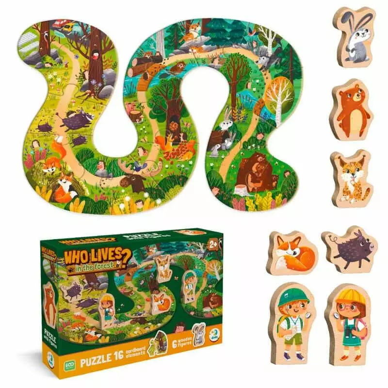 гр Пазл "Хто живе в лісі?" 300608 (18) "DoDo", 16 елементів, дерев’яні фігурки, 45х68 см, в коробці