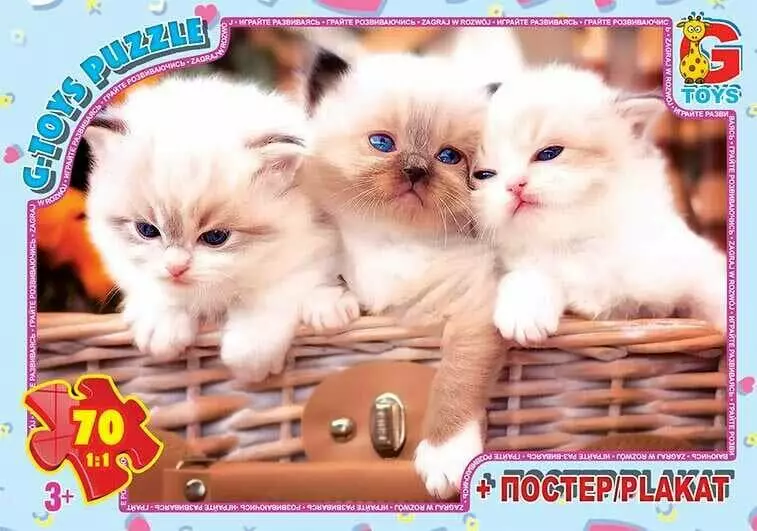 гр Пазлы 70 эл. "G-Toys" "Домашние любимцы" AN 130 (62) +постер, размер элемента 5х3см, размер собранной картинки 30х21см, в коробке