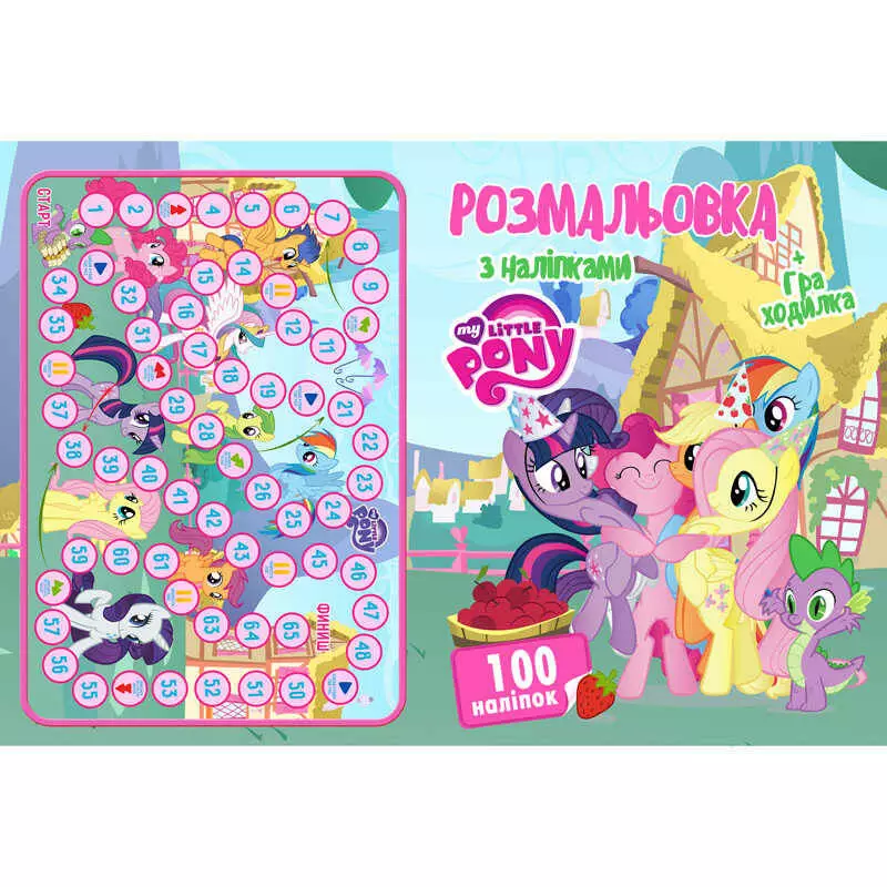 гр Розмальовка А4 + 100 наклейок: "Пони" /укр (50) формат А4, 16 сторінок + гра бродилка в подарунок 6900203253026
