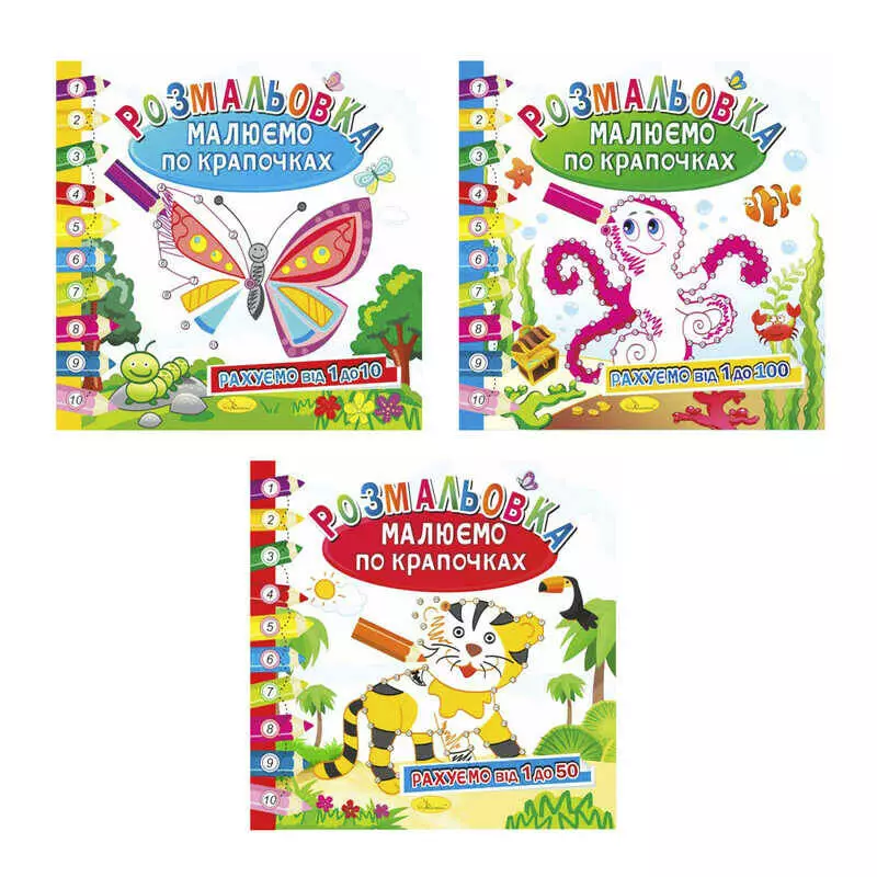 гр Розмальовка книжка "Малюємо по крапочкам" ВИДАЄТЬСЯ МІКС ВИДІВ РМ-63 (24) 3 вида, 12 сторінок "Апельсин"