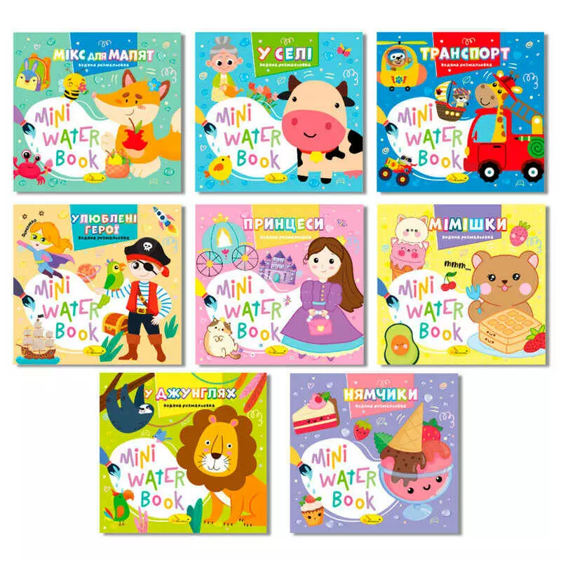 гр Розмальовка з наліпками "Mini water book" РМ-95 (16) "Апельсин", 6 сторінок, офсетний папір, глянцева ламінація, кольоровий друк, укр. та англ. м.
