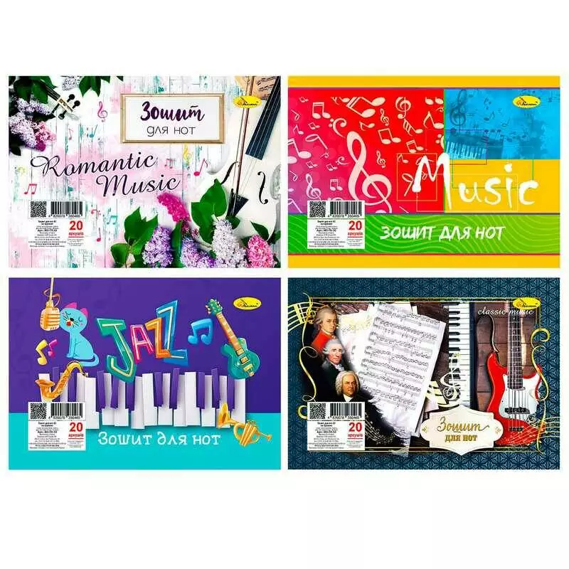 гр Зошит для нот МЗ-П5-20 / АП-0401 (40) А5, 20 арк., лаковка, пружина "Апельсин" ВИДАЄТЬСЯ МІКС ВИДІВ