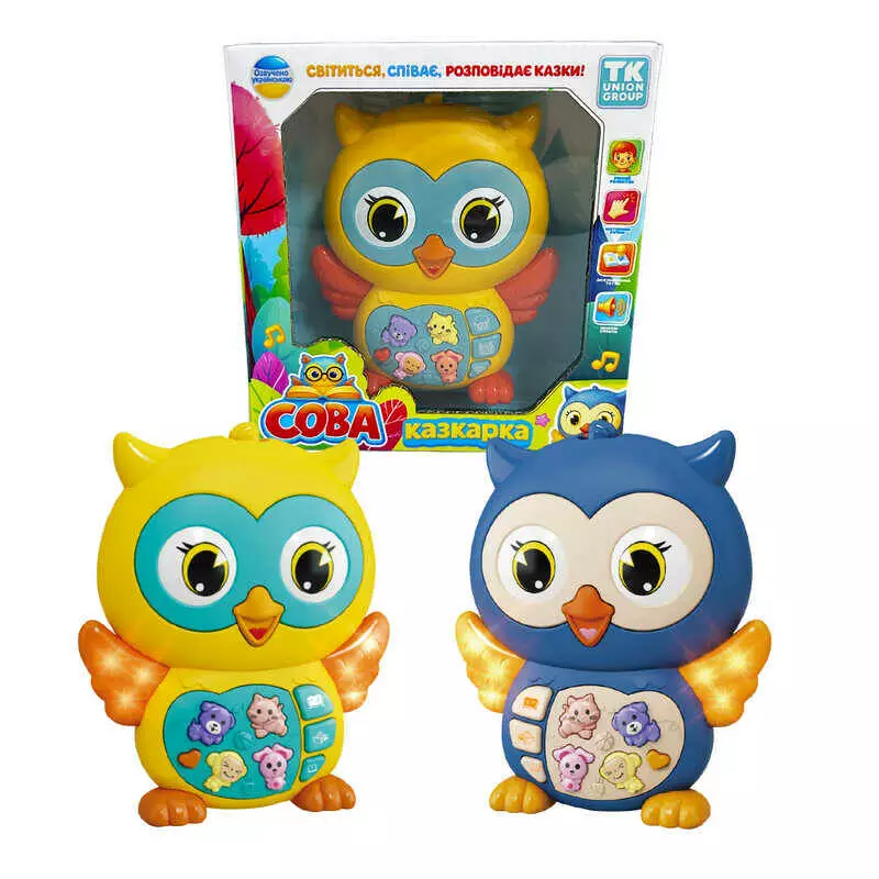 Сова-казкарка 42713 (120) "TK Group", ОЗВУЧУВАННЯ УКРАЇНСЬКОЮ МОВОЮ, 14 казок, 2 пісні, підсвічування крилець, 2 режими гучності, в коробці