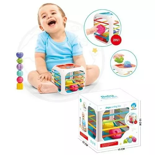 Гра A8994 куб 2в1 (сортер, грані з резинками), фігурки 6 шт., кор., 15-15-15 см.