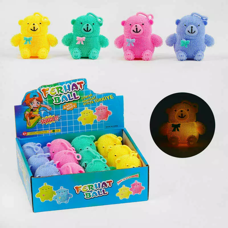 Гра антистрес C 60482 (24) ЦІНА ЗА 12 ШТУК В БЛОЦІ, "Ведмедик", підсвічування