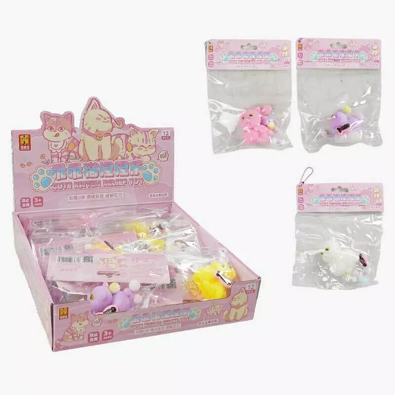 Гра антистрес C 70710 (24) ЦІНА ЗА 12 ШТУК В БЛОЦІ, "Котик", м`які кульки, скелет риби, в коробці
