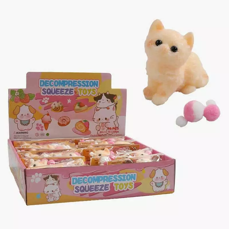 Гра антистрес C 72081 (24) ЦІНА ЗА 16 ШТУК В БЛОЦІ, "Тваринка", волохата, м`які кульки, пластикові очі, розмір 7х6х3 см, в коробці