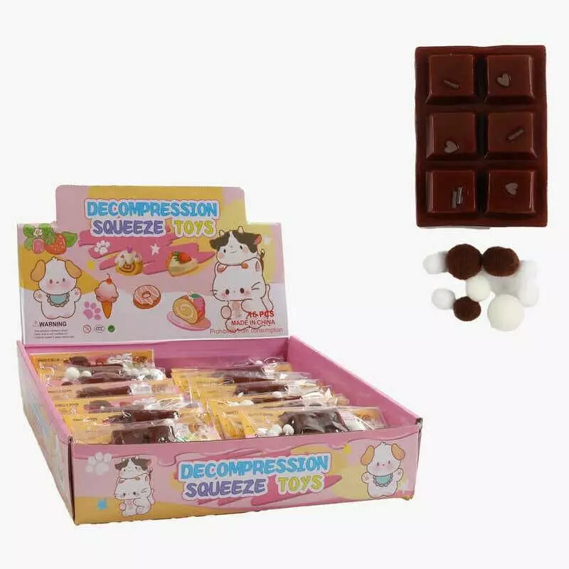 Гра антистрес C 72084 (24) ЦІНА ЗА 16 ШТУК В БЛОЦІ, "Плитка шоколаду", м`які кульки, посипка, розмір 5х7х1.5 см, в коробці