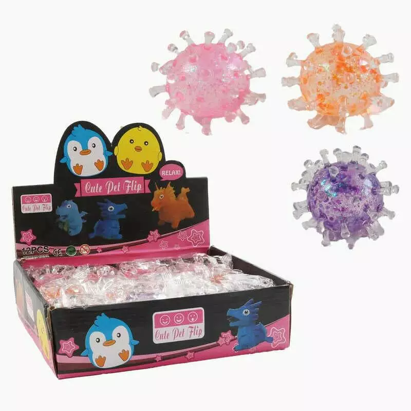 Гра антистрес C 72354 (24) ЦІНА ЗА 12 ШТУК В БЛОЦІ, "Вірус", розмір 7х7х7 см, гелеве наповнення, блискітки, в коробці