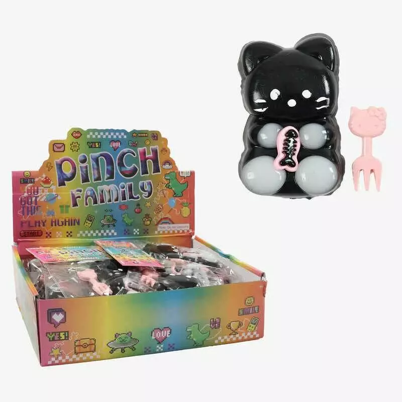 Гра антистрес C 72400 (16) ЦІНА ЗА 24 ШТУКИ В БЛОЦІ, "Кошеня", герой, розмір: 6х10 см, декоративна виделка, рибка, в коробці