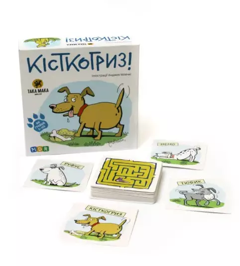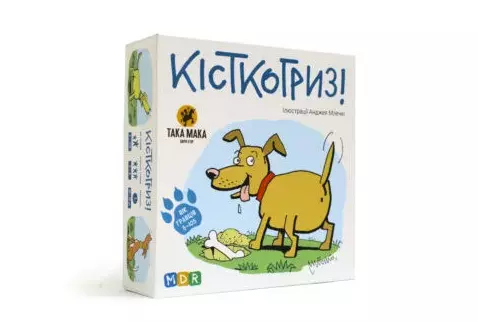 Серія ігор “Сідай і Грай”. Не витрачай час на правила! Розважайся з сім’єю та друзями! Миска, м’ячик, тапочки, шкарпетка і подушка – собачі скарби. Розпочалося веселе полювання! Вкажи першим, який собака візьме скарб, і отримай бали. А як побачиш собаку з кісткою, кричи: “Кісткогриз!”. Грай у гру «Кісткогриз» і тренуй спостережливість та швидкість реакції! В коробці Правила гри 59 Карток Гра буде цікавою дітям від iшести років. Сімейна гра, яка буде одночасно цікавою батькам та дітям, вдома чи на відпочинку, адже це саме той випадок, коли діти мають великі шанси виграти у дорослих! Правила гри прості - кажи першим, який собака візьме скарб, і отримай бали. А як побачиш собаку з кісткою, кричи: "Кісткогриз!"