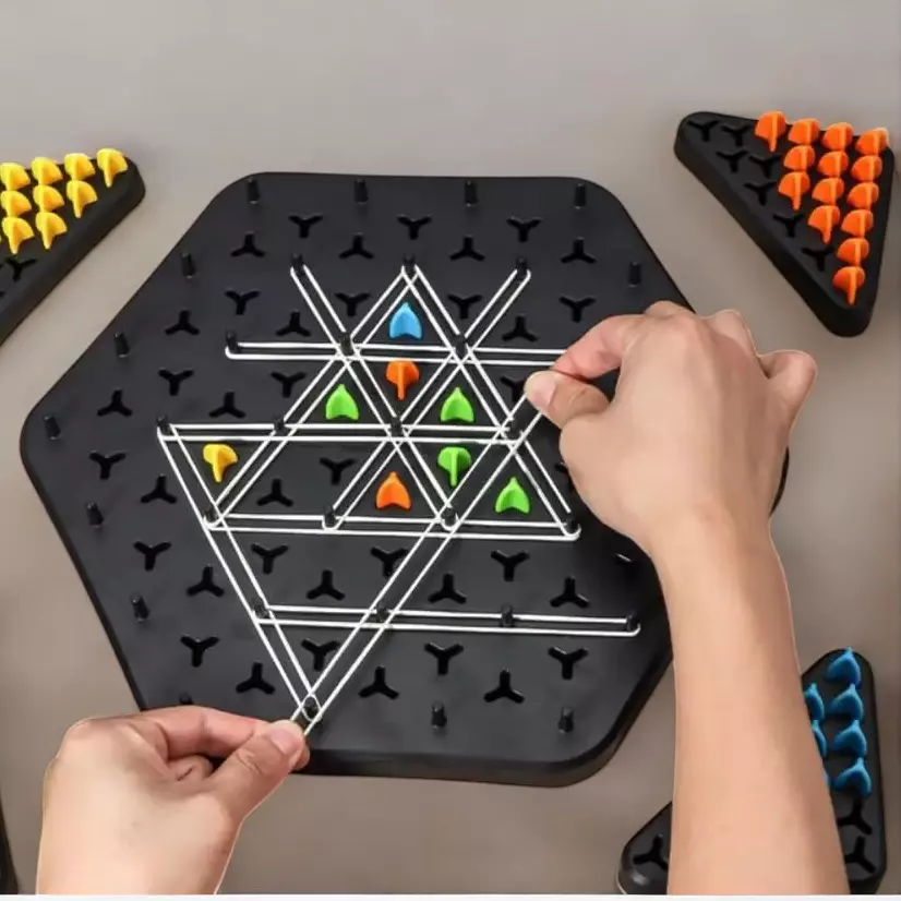 гумки та фішки для побудови трикутників на ігровій дошці,