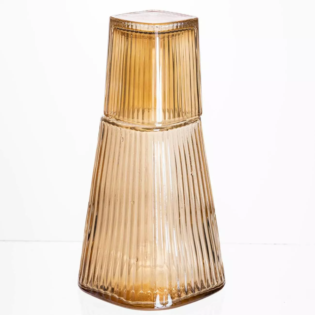 Карафе зі склянкою – стильний та практичний набір для води та напоїв. Прозорий графин з рельєфними гранями зручно тримати в руці, а склянка служить не тільки посудом для пиття, а й кришкою, що надійно захищає вміст. Такий карафе стане чудовим рішенням для дому, офісу або тумбочки - вода завжди під рукою і в елегантній подачі.