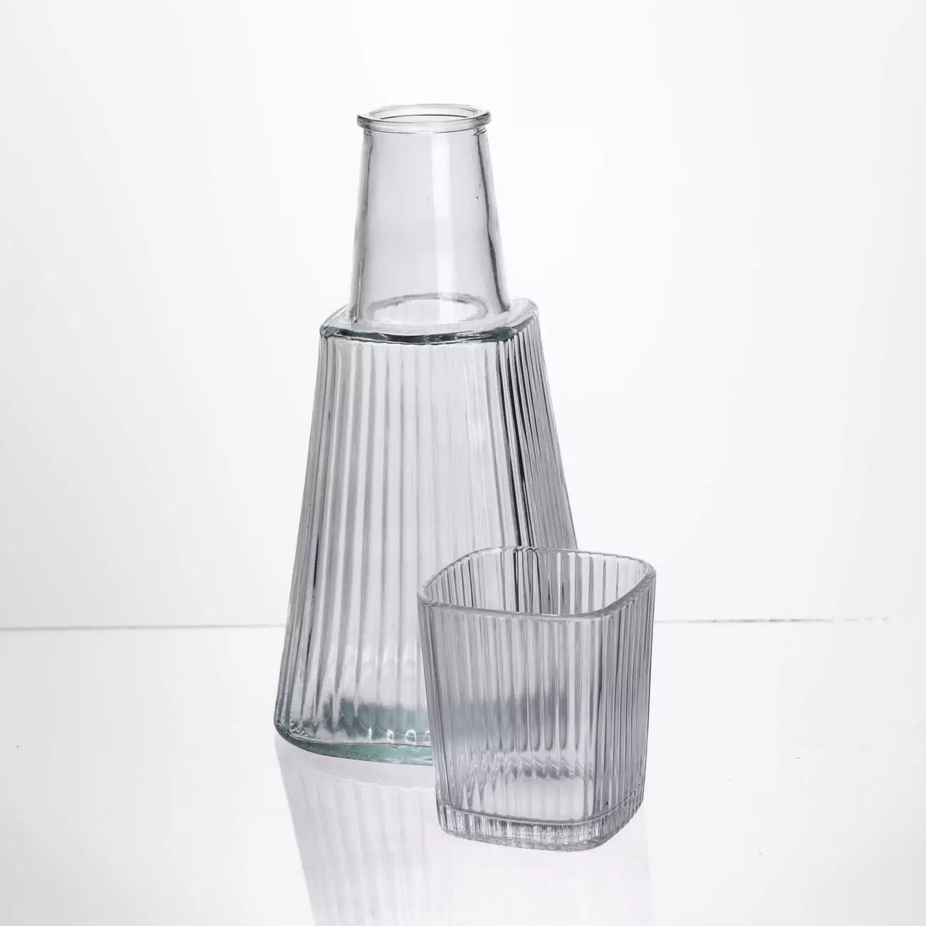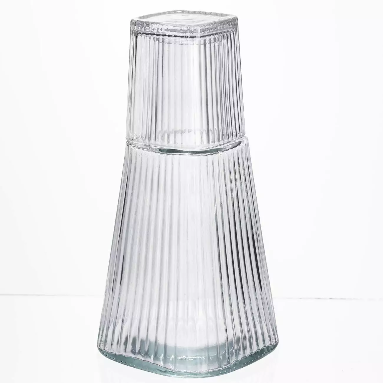 Карафе зі склянкою – стильний та практичний набір для води та напоїв. Прозорий графин з рельєфними гранями зручно тримати в руці, а склянка служить не тільки посудом для пиття, а й кришкою, що надійно захищає вміст. Такий карафе стане чудовим рішенням для дому, офісу або тумбочки - вода завжди під рукою і в елегантній подачі.