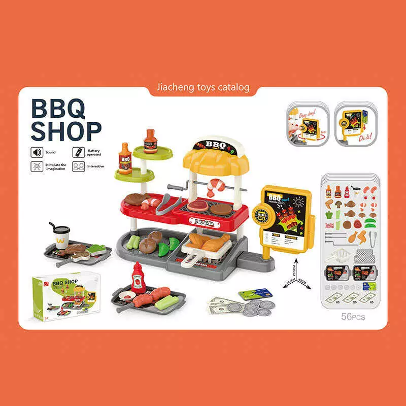 Гриль 668-145 (36) 56 елементів, звукові ефекти каси, грилі, фритюр, таці, монети, купюри, продукти, баночки з соусами, в коробці
