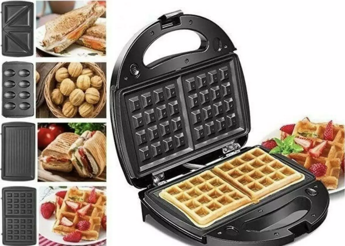 4 змінні пластини: вафельниця, сендвічниця, горіхи та гриль;