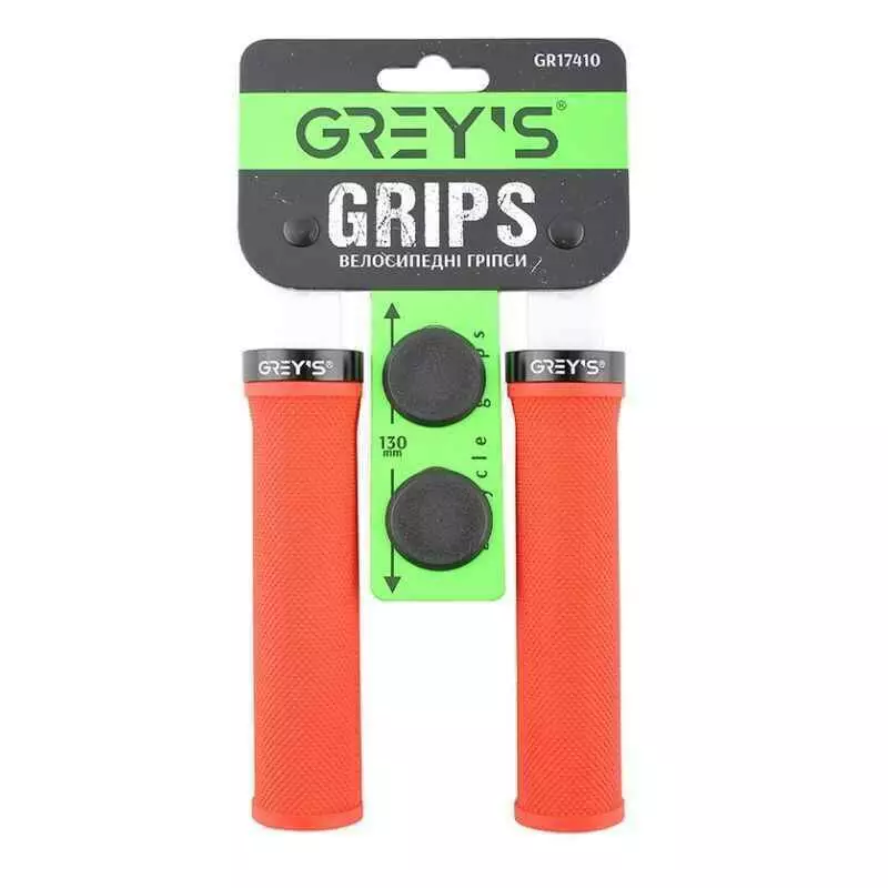 Грипсы на велосипед 13см Grey's с односторонним замком и заглушками красные 2шт (GR17410)